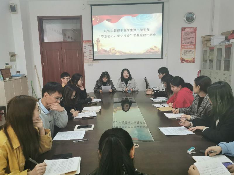 2019年11月12日,经济与管理学院学生第二党支部在1号教学楼A座204召开“不忘初心、牢记使命”主题教育专题组织生活会,会议由经济与管理学院学生第二党支部书记陈雅雯主持,学生第二党支部全体党员参与了此次会议。