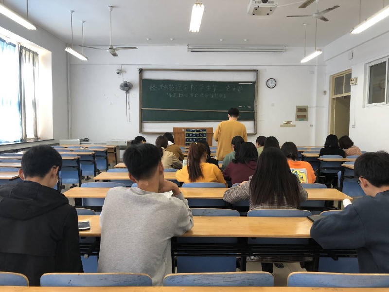 2019年10月8日,经济与管理学院学生第二党支部在1号教学楼A座205教室开展“不忘初心、牢记使命”主题教育,主讲人为经济与管理学院学生第二党支部书记陈雅雯,支部全体党员参与了此次大会。