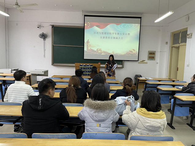 12月2日,经济与管理学院学生第五党支部支部委员会换届大会在1A205召开,会议由经济与管理学院支部书记王子蔚主持,全体党员及预备党员参与会议。