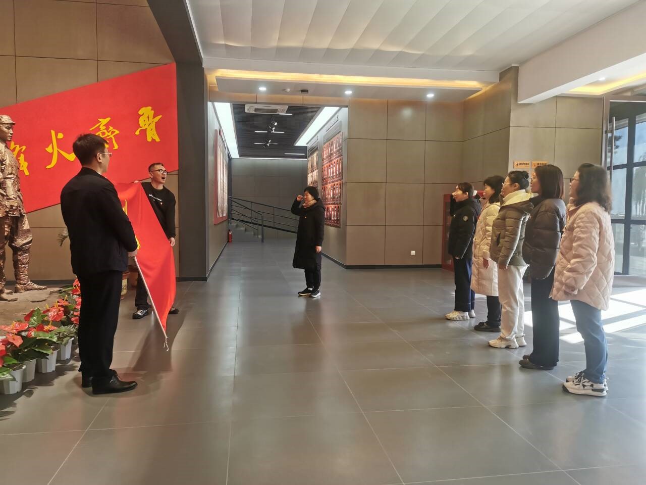 参观学习结束后,全体党员面向党旗高举右拳,重温入党誓词。随后在徂徕山烈士陵园公墓前鞠躬默哀,并向烈士敬献花篮。