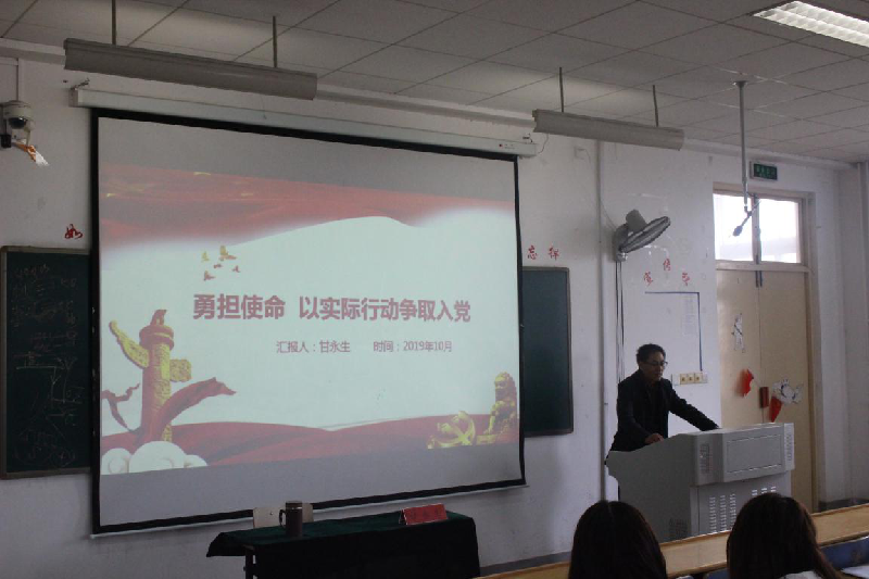 甘永生教授首先肯定了我院131名入党积极分子的积极精神,指出入党积极分子应以实际行动入党、担起民族伟大复兴为使命。他以中国共产党的发展史为切入点,在屈辱百年史、救亡图存运动史、中国共产党28年革命斗争史的讲解中引例证明中国共产党是最有觉悟、最有理想、最有本领、最有担当的政党,教导入党积极分子、青年大学生中的优秀代表,一定要牢记领袖呼唤、不负人民重托、无愧历史的选择,率先使自己成为有理想、有担当、有本领的优秀青年。