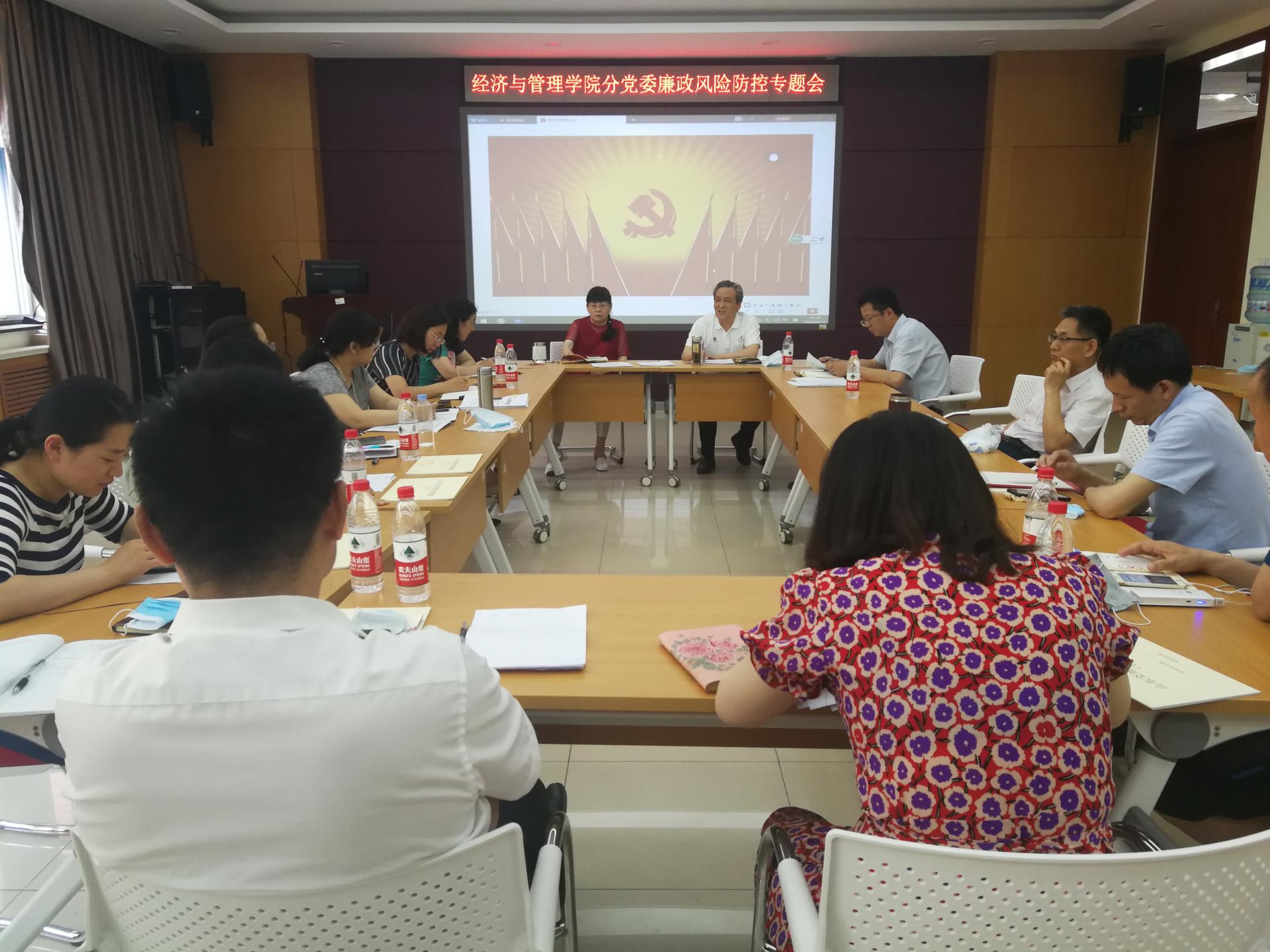 6月10日下午,经济与管理学院分党委召开全面从严治党工作专题会,会议由分党委书记赵中利主持,学院分党委成员和各支部书记参加了会议。