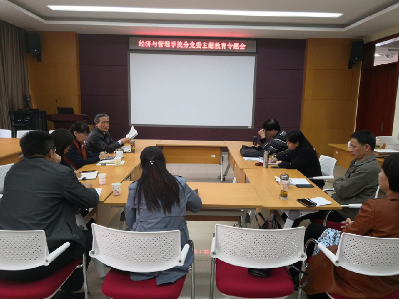 2019年10月21日,经济与管理学院理论中心组在1号教学楼B座104教室学习《习近平关于“不忘初心、牢记使命”论述摘编》,主持人为经济与管理学院分党委书记赵中利,我院分党委理论学习中心组成员参与了此次学习。