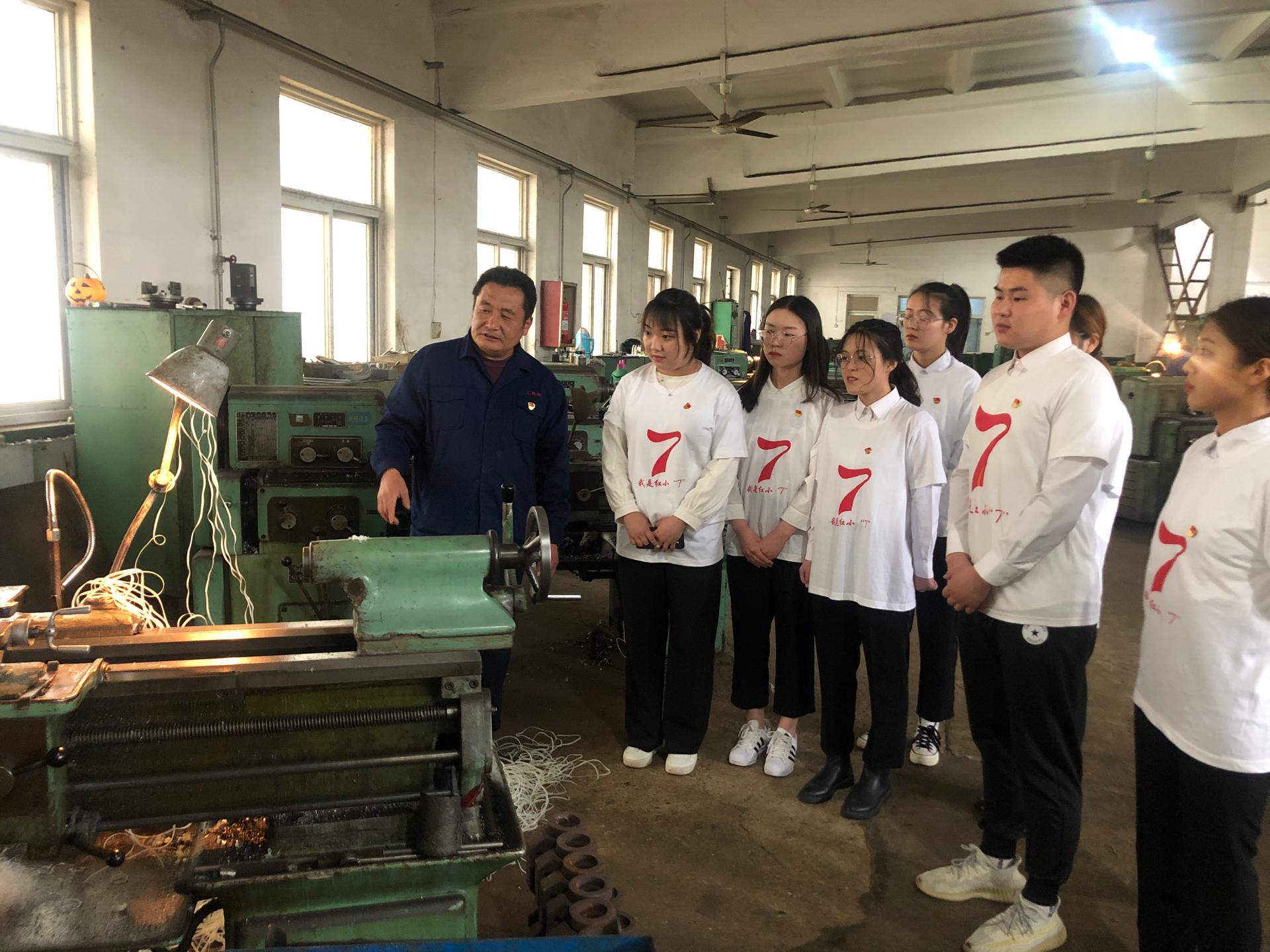 此次主题活动主要是向获得过山东省突出贡献技师、泉城首席技师、济南市五一劳动奖章的邴文法老师进行学习。在党员活动会议室,同学们与邴老师进行了深入的座谈,邴老师讲述了自己从业近30年的心得体会,告诉大家要立足本岗,脚踏实地;要扎实工作,做好规划;要兢兢业业,甘于奉献。在车间里,邴老师给大家娴熟地演示了钳工操作的过程,在他的指导下,同学们体验了钳工“工序、安装、工位、工步”等工艺技术过程。