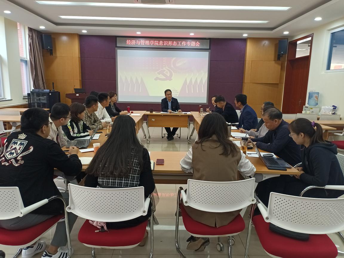 5月8日上午,经济与管理学院党委在长清校区一号教学楼1B104会议室召开意识形态工作专题会议。学院党委委员、相关负责同志参加会议。会议由学院党委书记滕怀国主持。