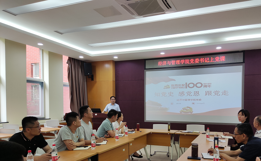为扎实开展党史学习教育,提高党员干部思想素质,6月29日下午,经济与管理学院党委书记滕怀国以“知党史 感党恩 跟党走”为主题,为学院全体党委委员、党支部书记上了一堂生动的专题党课。