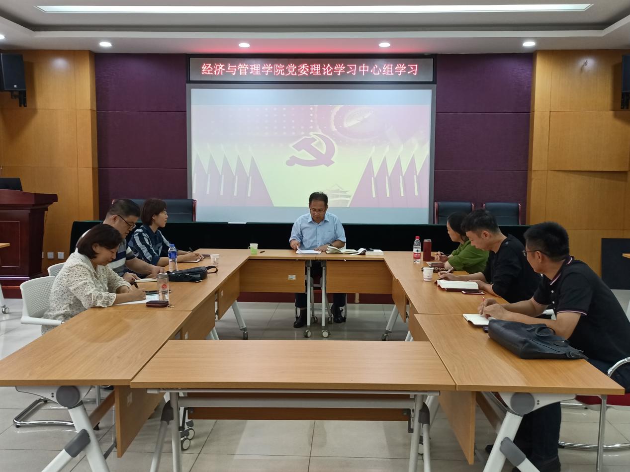 9月23日下午,经济与管理学院党委理论学习中心组在长清校区一号教学楼1B104会议室开展集体学习。学院党委理论学习中心组成员参加学习,学院党委书记滕怀国主持学习活动。