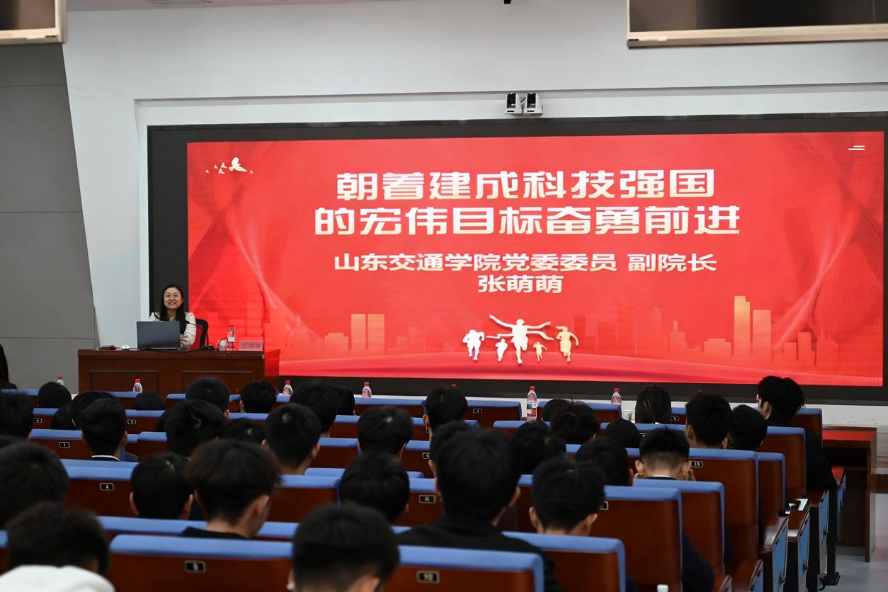11月26日下午,学校党委委员、副院长张萌萌以《朝着建成科技强国的宏伟目标奋勇前进》为题,在长清校区机电楼B107为经济与管理学院、航空学院、顿河学院师生讲授专题党课。