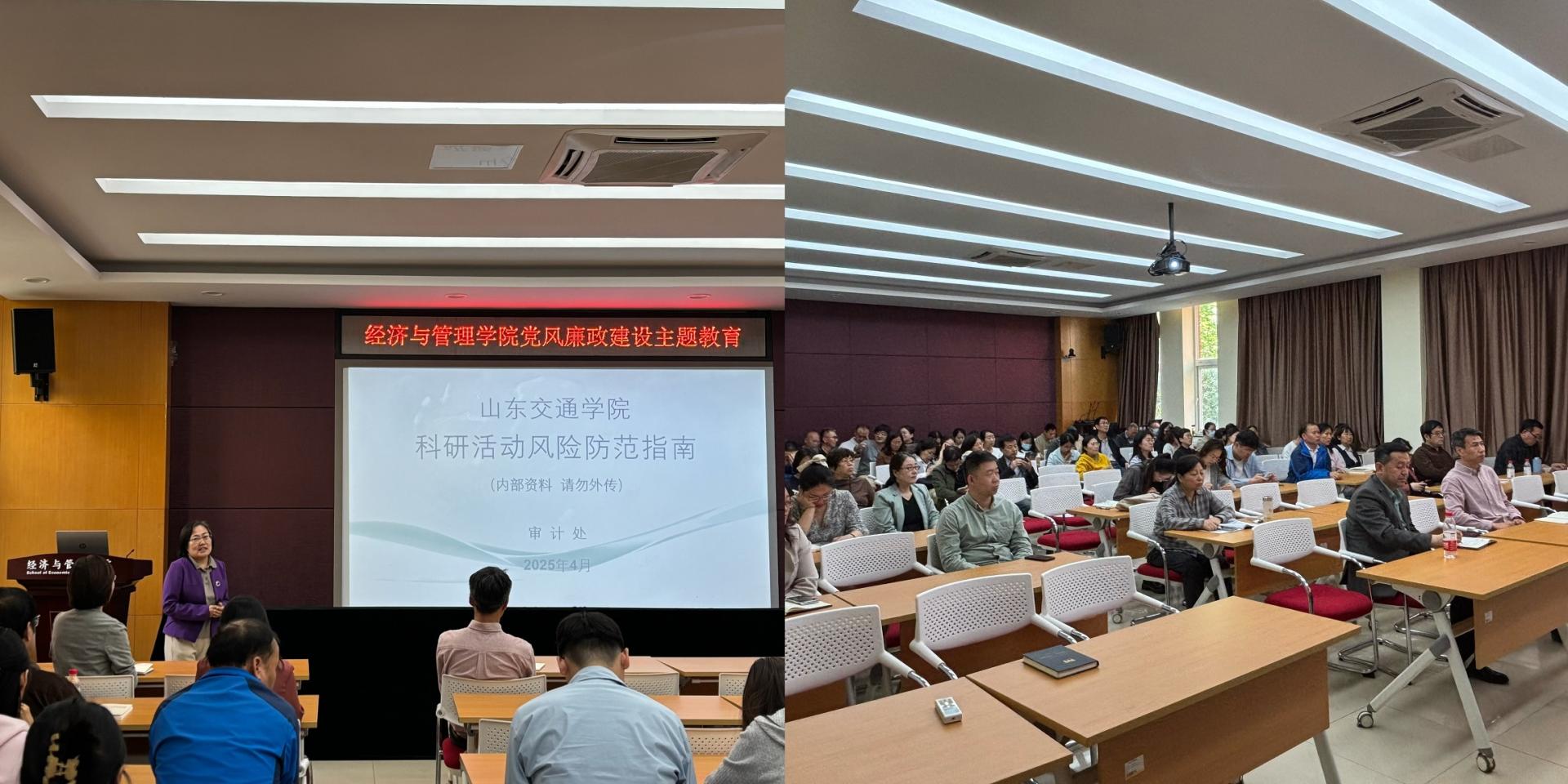 王桂芬以《山东交通学院科研活动风险防范指南》为题,系统梳理了财务管理、科研管理、合同管理三个关键领域可能潜藏的廉政风险点,并结合学校相关文件和典型案例提出了切实可行的防范措施。