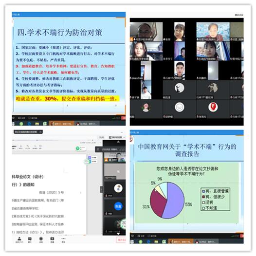 学院制订了《经济与管理学院本科生毕业论文学术道德和学术规范实施办法》和毕业论文格式规范参考示例,并开展学术道德和论文写作规范宣讲活动。本次宣讲采取线上形式,覆盖本学院6个本科专业,732名本科毕业生。