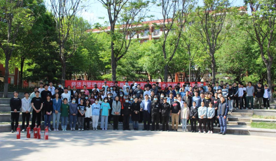 2021年4月28日下午两点经济与管理学院在一号公寓楼及下沉广场开展消防应急演练。经济与管理学院副书记王莉、辅导员和学院学生参加了演习。