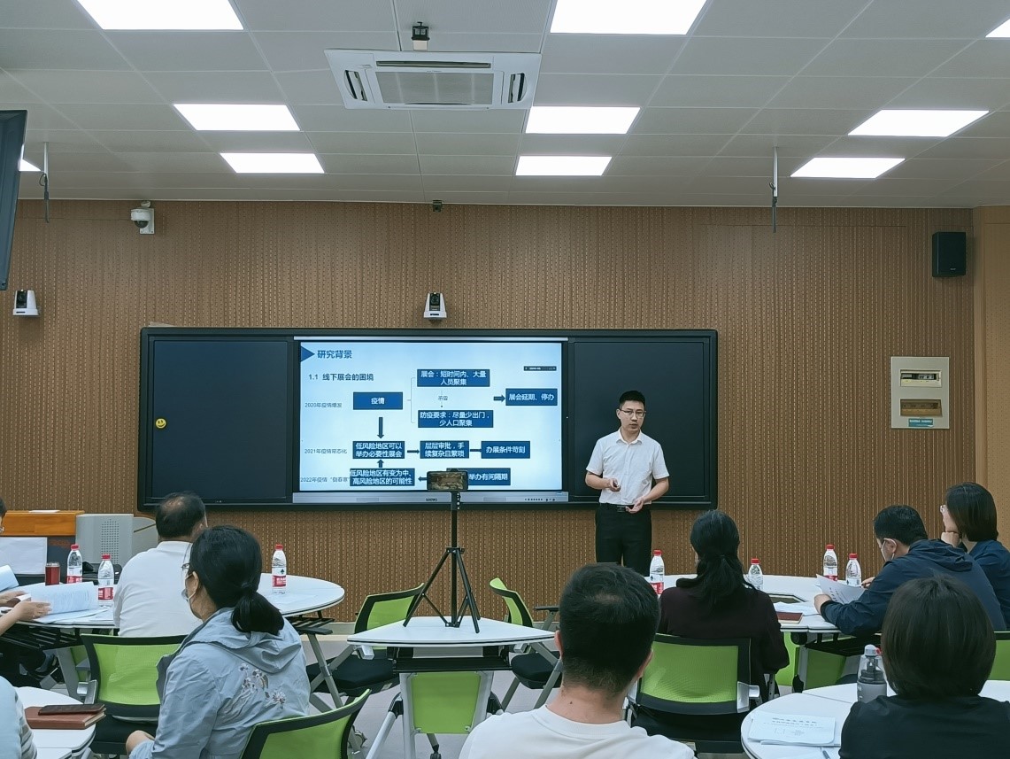5月25日上午,经济与管理学院2022届本科毕业论文示范答辩在1A203成功举行。经过遴选,两名优秀毕业生进行示范答辩。本次答辩会由副院长聂云霞主持,2022届毕业论文工作领导小组、15个答辩小组的答辩组长、优秀论文指导教师及各班同学参加,同时近500名毕业生线上进行观摩学习。