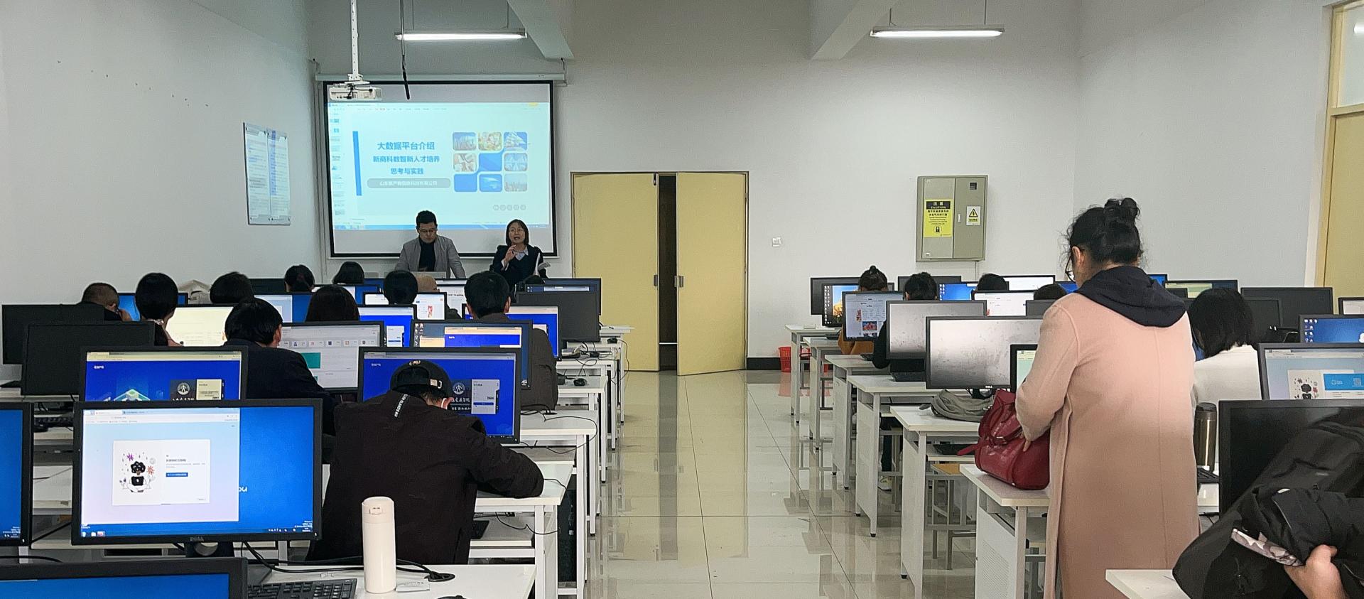 11月11日下午,经济与管理学院组织开展大数据平台操作培训会议,共同探讨新商科数智化人才培养。山东新产教信息科技有限公司经理徐文锋、工程师王昭贤、经济与管理学院骨干教师参加培训。