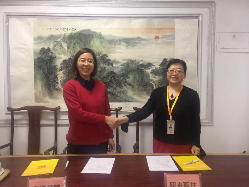 11月29日下午,副院长聂云霞带领行政管理系主任张泉、副主任马彩凤来到济南恒昌大厦,与山东职来职往人力资源管理服务有限公司签署产学研合作协议并举行挂牌仪式。