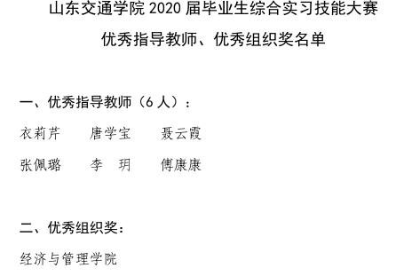 5月20日,为落实学校“停课不停学”工作部署,由教务处主办,经济与管理学院承办山东交通学院2020届毕业生综合实习技能大赛圆满落幕。