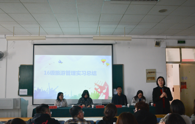 4月3日,会展旅游系举行旅游管理专业16级酒店实习表彰总结会,经济与管理学院副院长聂云霞出席会议并讲话,会展旅游系全体教师、旅游管理16级辅导员李丹老师参加了会议。
