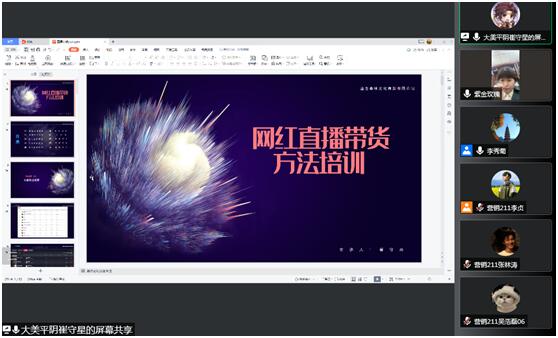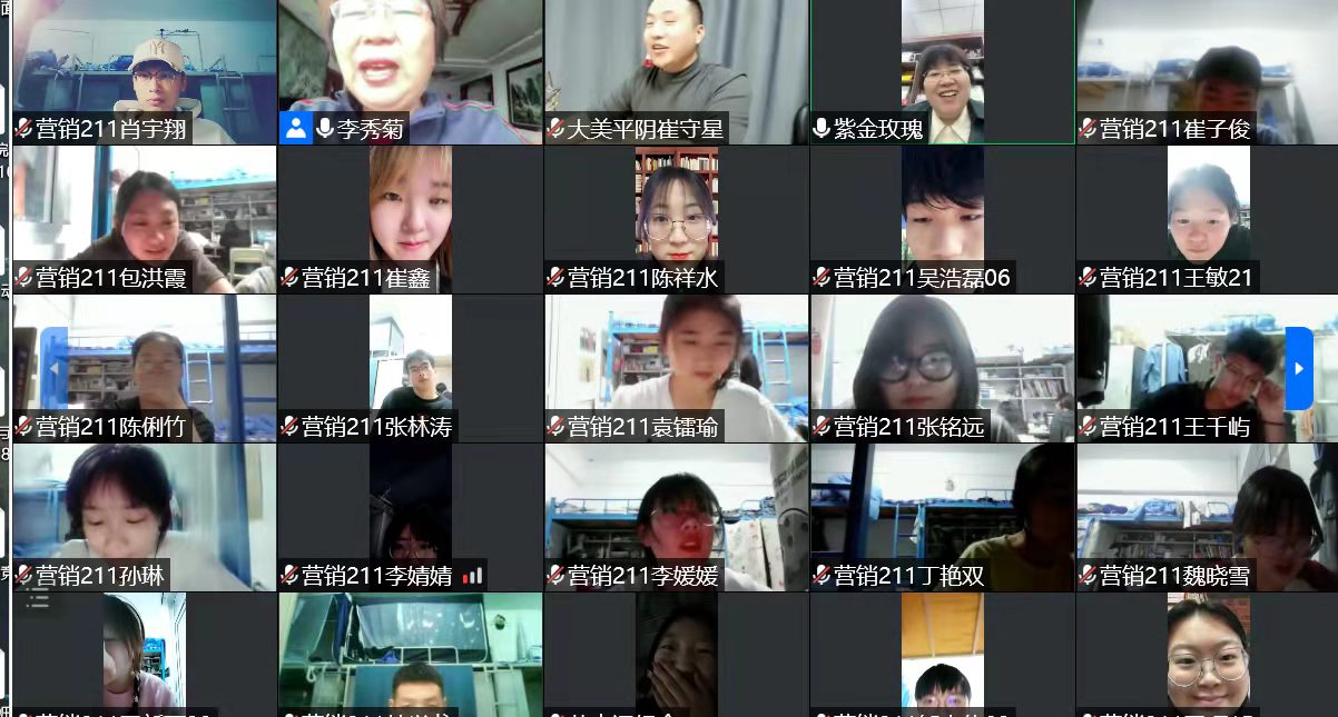 5月9日下午,济南市专业直播讲师崔守星受济南市紫金玫瑰公司的邀请,在线上给市场营销专业211班学生进行了直播带货的线上培训和讲解。通过富有实战经验的讲师的生动讲解,同学们了解了当前视频营销的现状和发展的趋势,以及国家对直播平台以及短视频营销的相关政策法规。同时,主讲人结合自身经验给同学们讲了直播的技巧和规范用语。