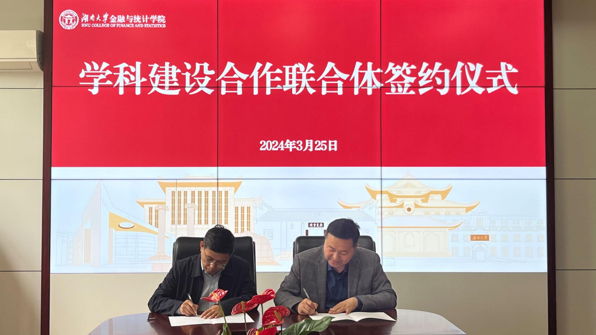3月25日,湖南大学金融与统计学院与我校经济与管理学院举办学科建设合作联合体签约仪式。